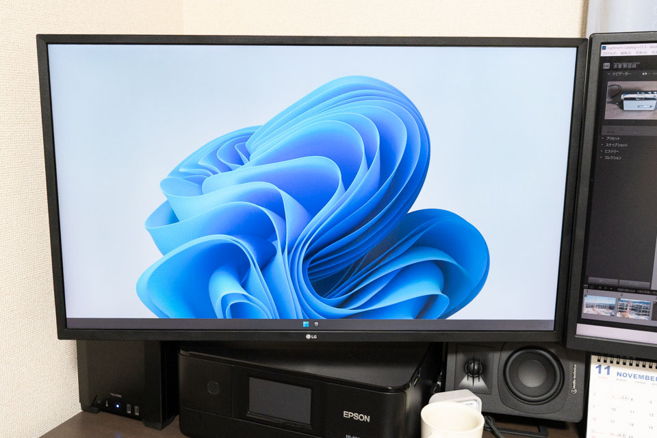 早速交換してモニターの下に設置しました。ケーブルが短くなっておかげで、長いケーブルを束ねる必要がなく、空間に余裕が生まれました。