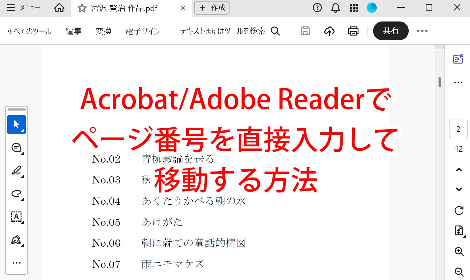 Acrobat/Adobe Reader(無料版)でページのサムネイルから目的のページへ移動する方法を紹介します。