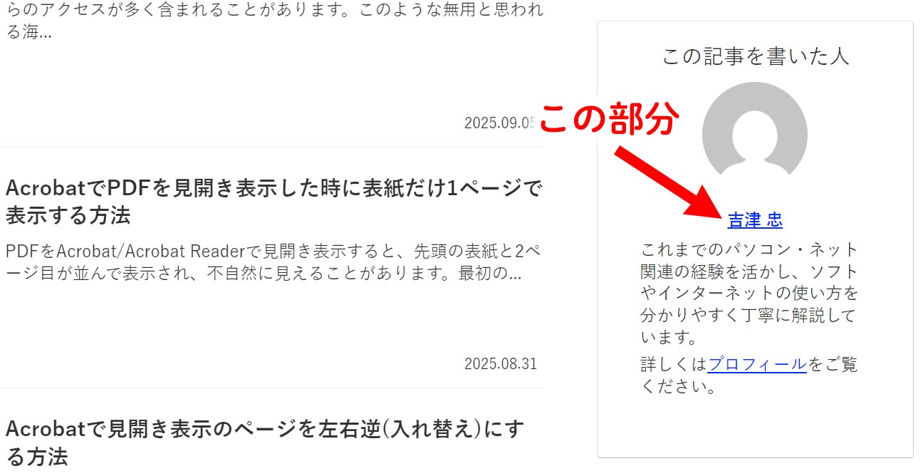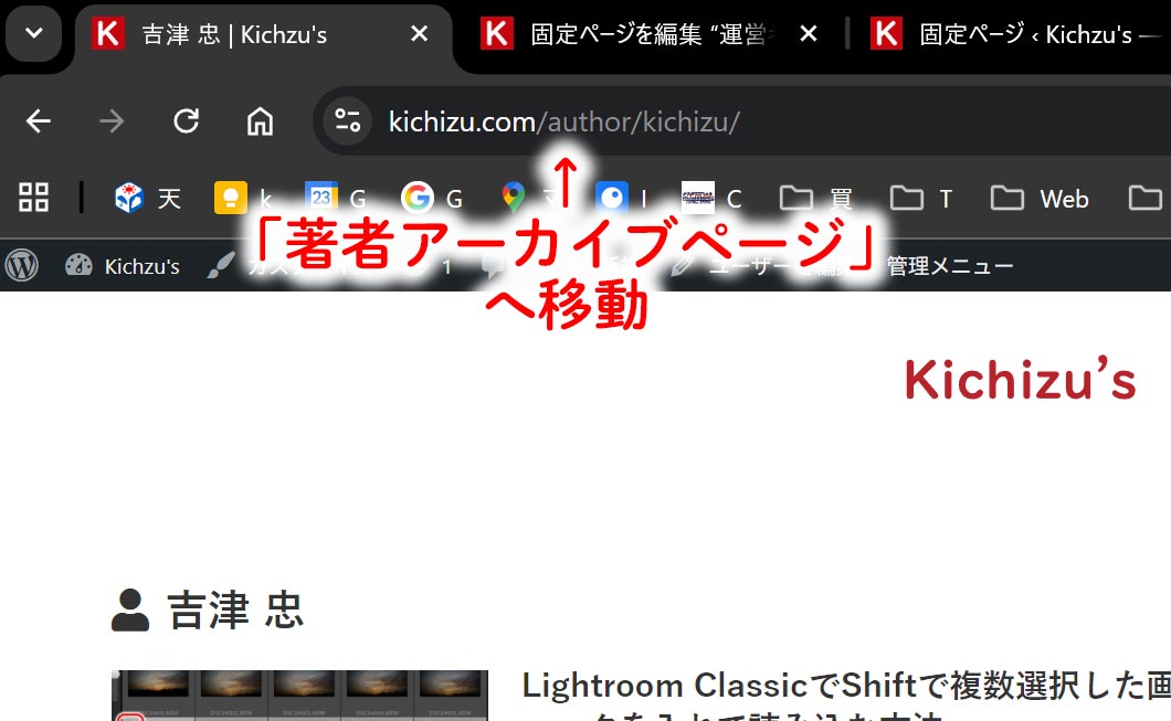 通常は /author/ユーザー名/にある「著者アーカイブページ」へ移動します。