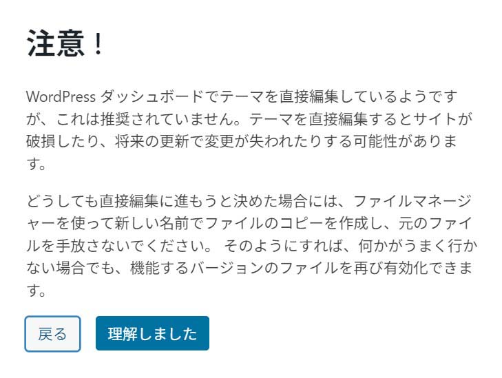 警告が出るので「理解しました」をクリックします。