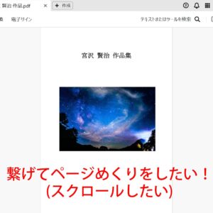 この状態で、マウスの左ボタンを押したまま移動させるとPDFのページが動かした方向に移動します。